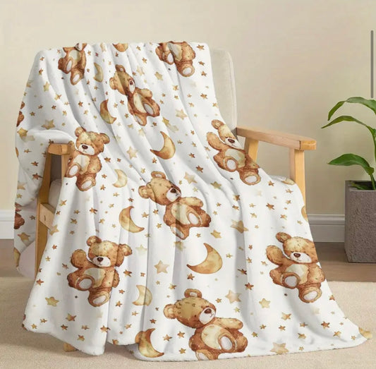 Teddy Bear with Moons and Stars Fleece Blanket